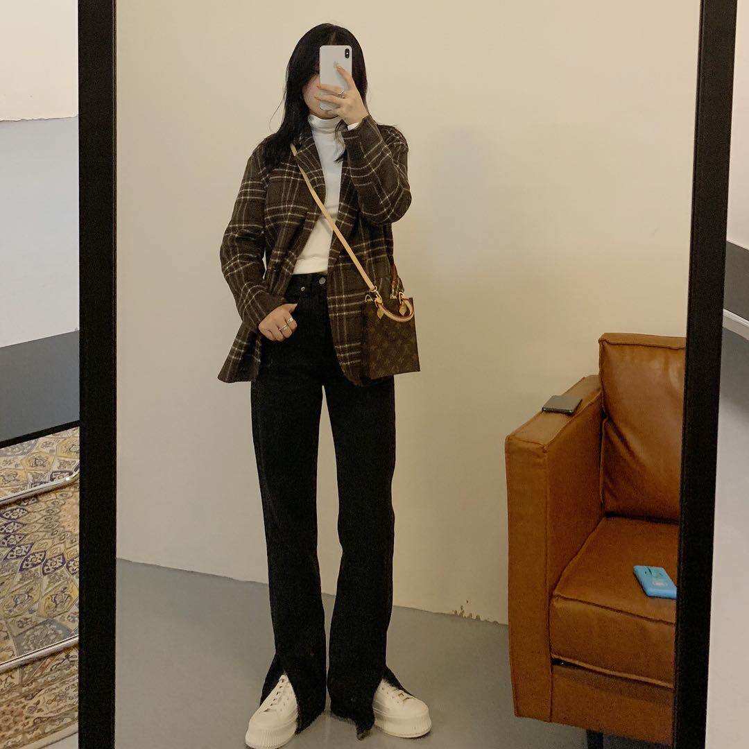 BLACKY Spring 2021 New Split Jeans High-rise Slim Straight Pants Loose Wide Leg Jeans Women's Tide