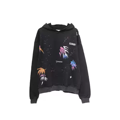 LIMPIDOCULUS(LIMS)20AW black heavy water hand washing worker splashing ink loose hooded printed thick cotton T tide