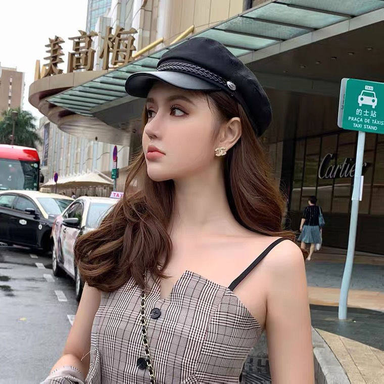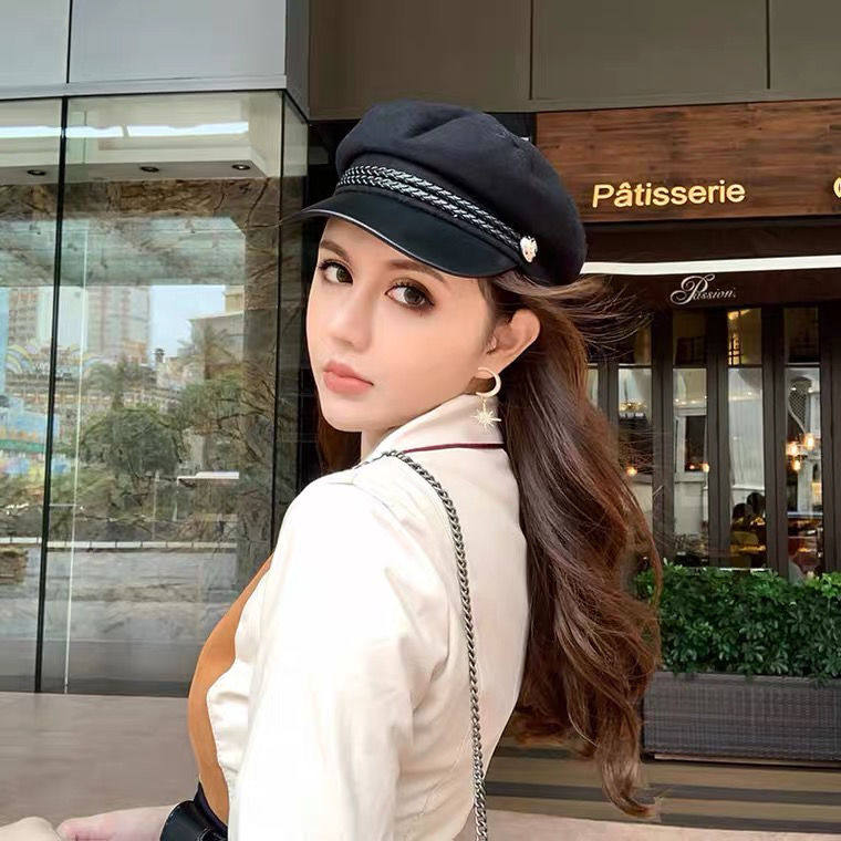 Wool black flat top navy hat British retro net red beret female autumn and Winter Korean version of the octagonal hat wild