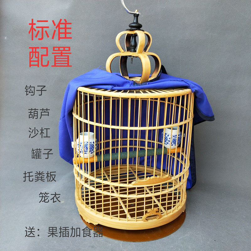 Boutique thrush bird cage bamboo products round cage full set of bird cage accessories raw head starling wax mouth semi-finished bird cage