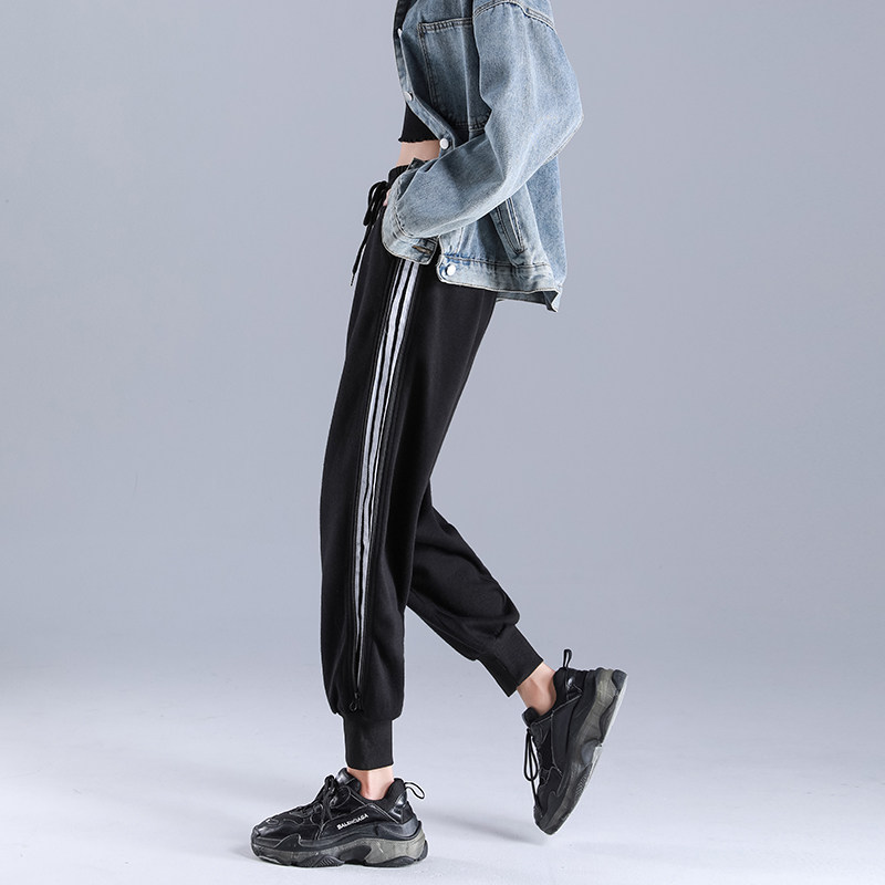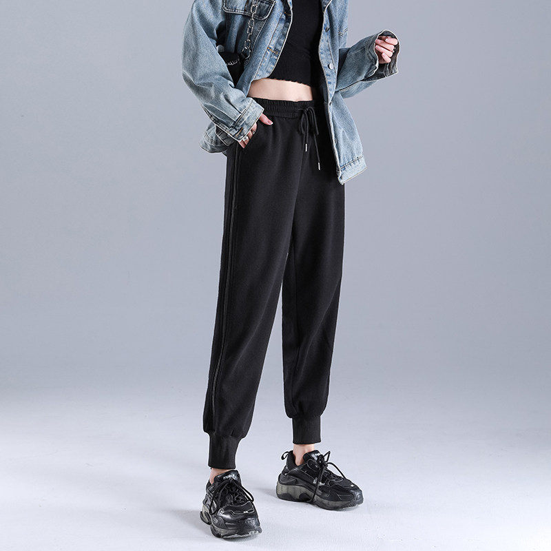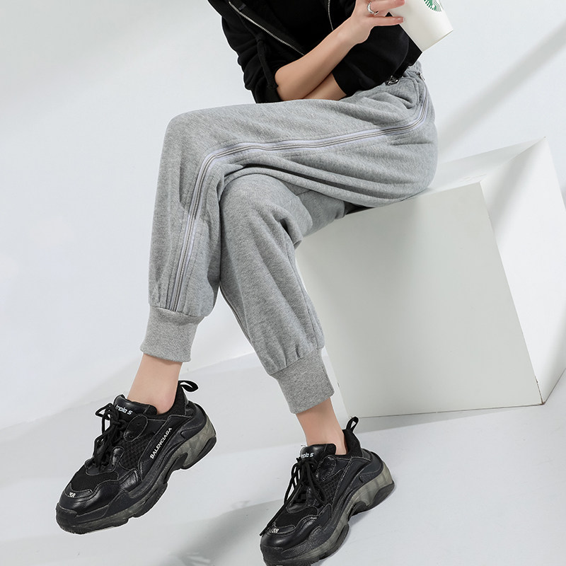 Grey sweatpants women loose-fitting feet spring and autumn show thin with high-waisted ins trendy casual tie mouth thick guard pants