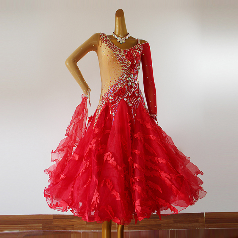 Morden dance contest dresses waltz acting out of the trade dance performance clothes V collar square Dancing and drilling accessories flutter