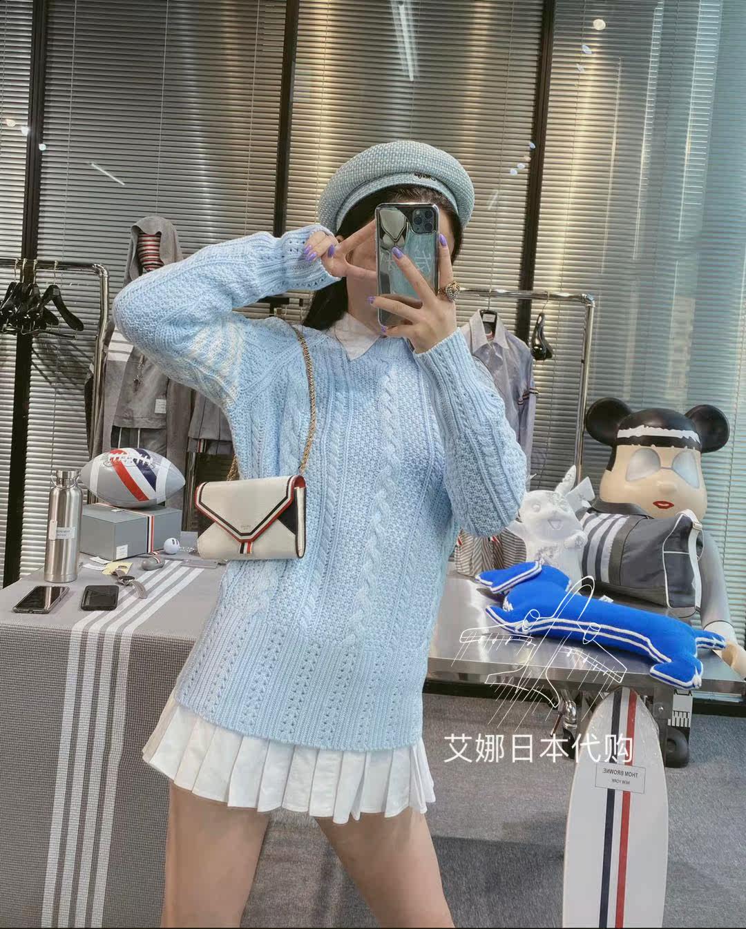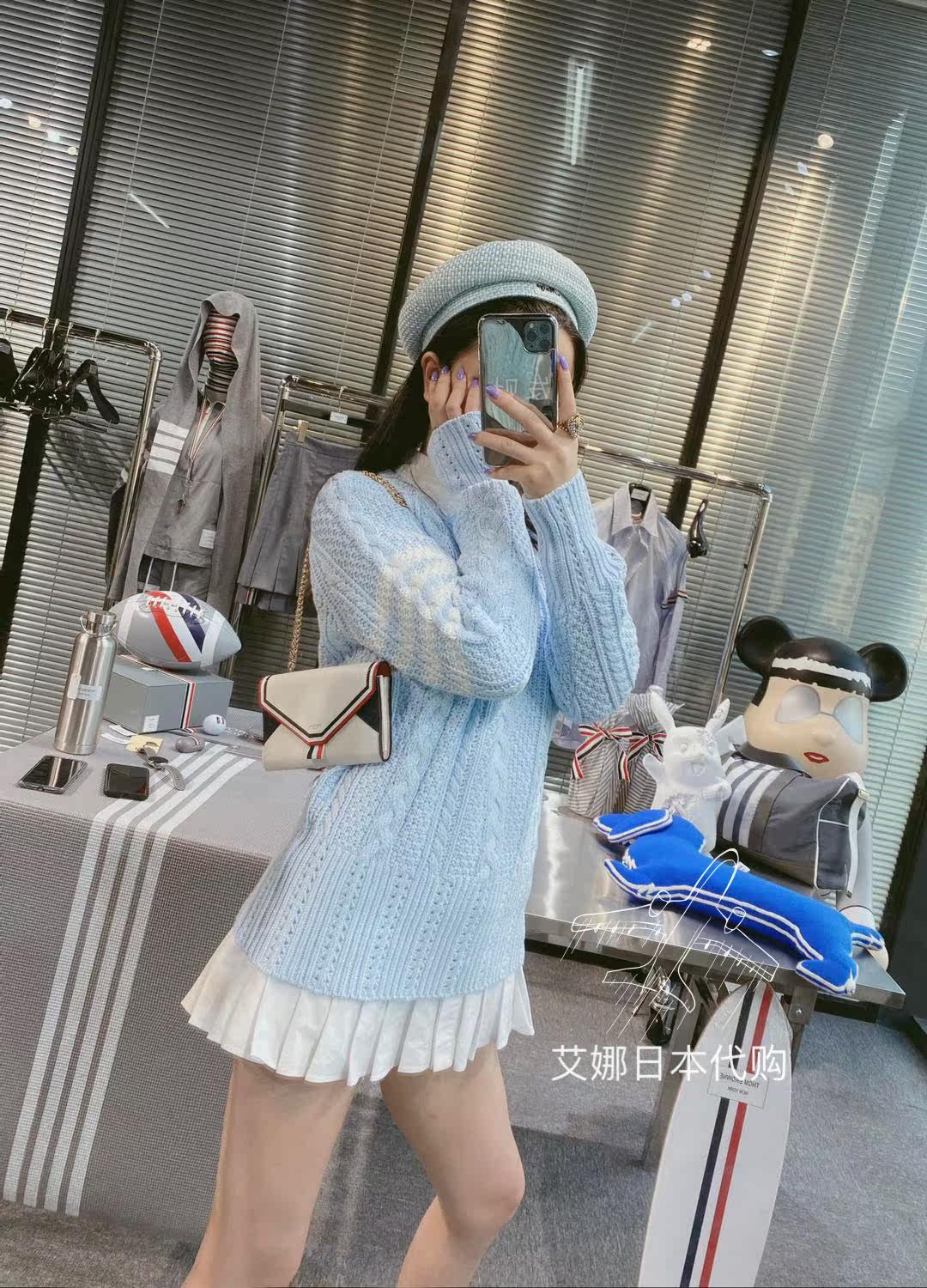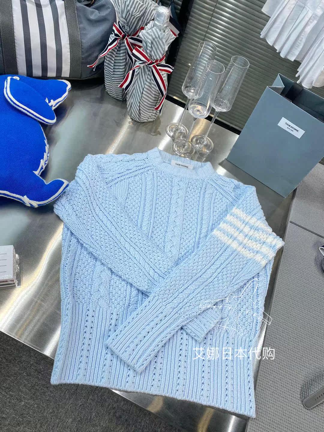Aina Day Generation Thom Browne 20 Autumn Winter Knit Women's Clothing TB Four Bars Blue cashew with white sweater