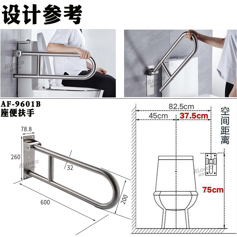 Accessible toilet toilet side stainless steel upper armrest foldable safety handle AF-9601B