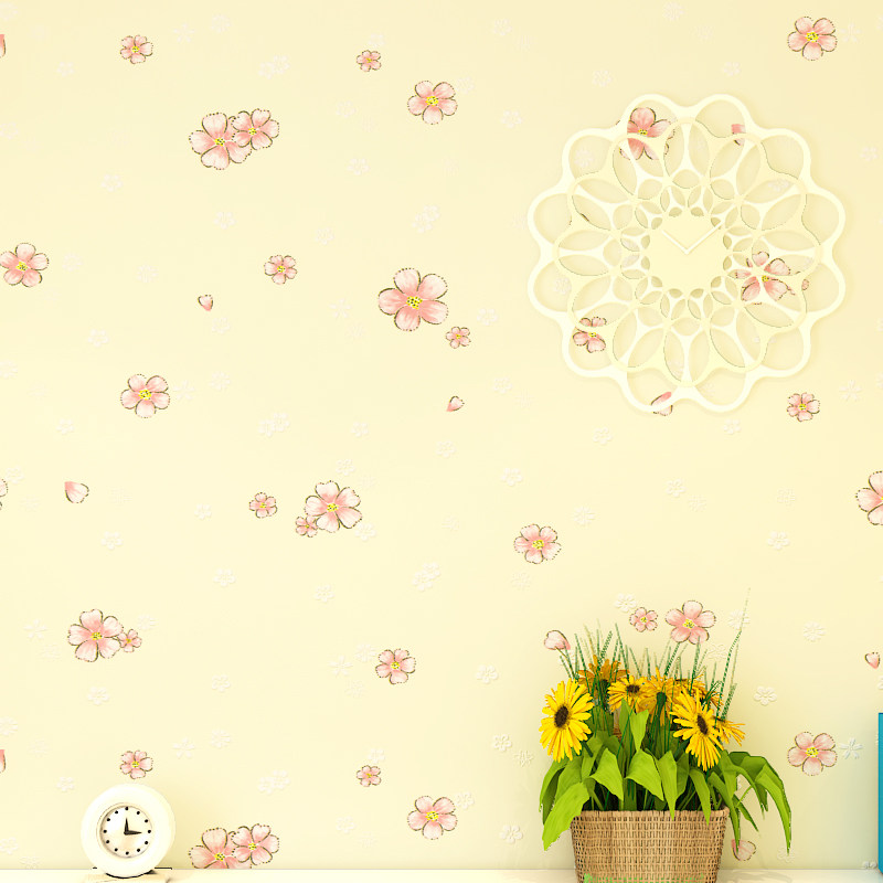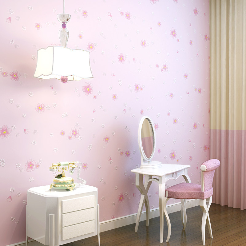 Romantic floral bedroom wallpaper pastoral warm living room special background wall wallpaper non-woven cloth wedding room girl pink