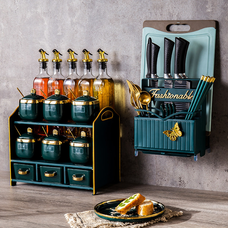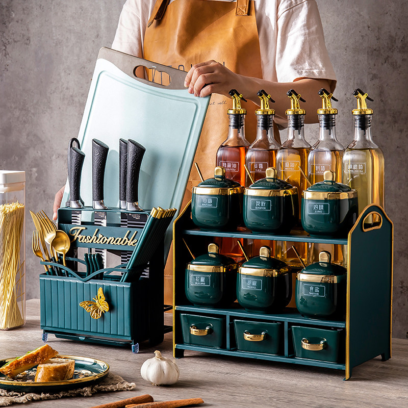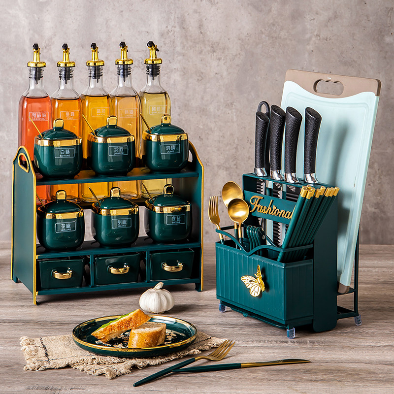 Light luxury kitchen supplies ceramic seasoning jar salt seasoning jar glass oil shelf household chopsticks chopping board rack knife holder