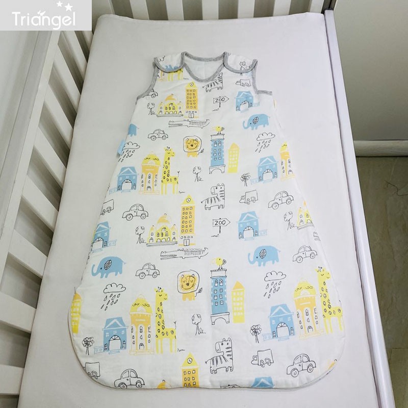 (Blemish handling) Spring baby sleeping bag Detachable Sleeve Integrated Baby Gauze Sleeping Bag anti-kick by two-way launder