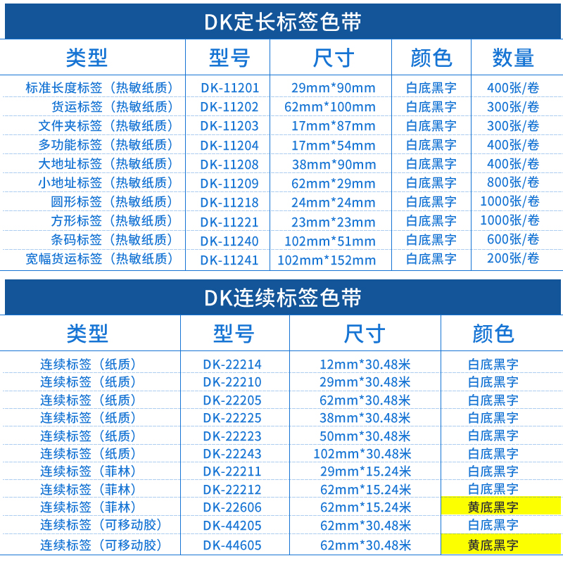 DK22205 applicable brother barcode label printing machine 22605 QL-700 QL-580 QL-720 800 1050 white bottom black character yellow