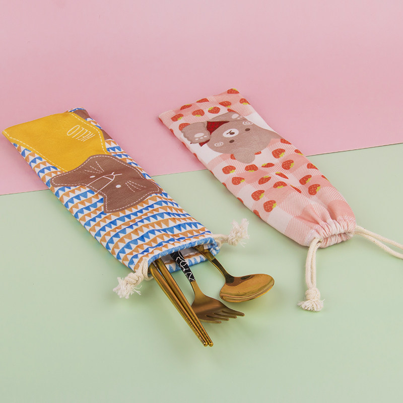 Tableware bag portable children with chopsticks spoon tableware box containing bags small Japanese-style travel tableware bag
