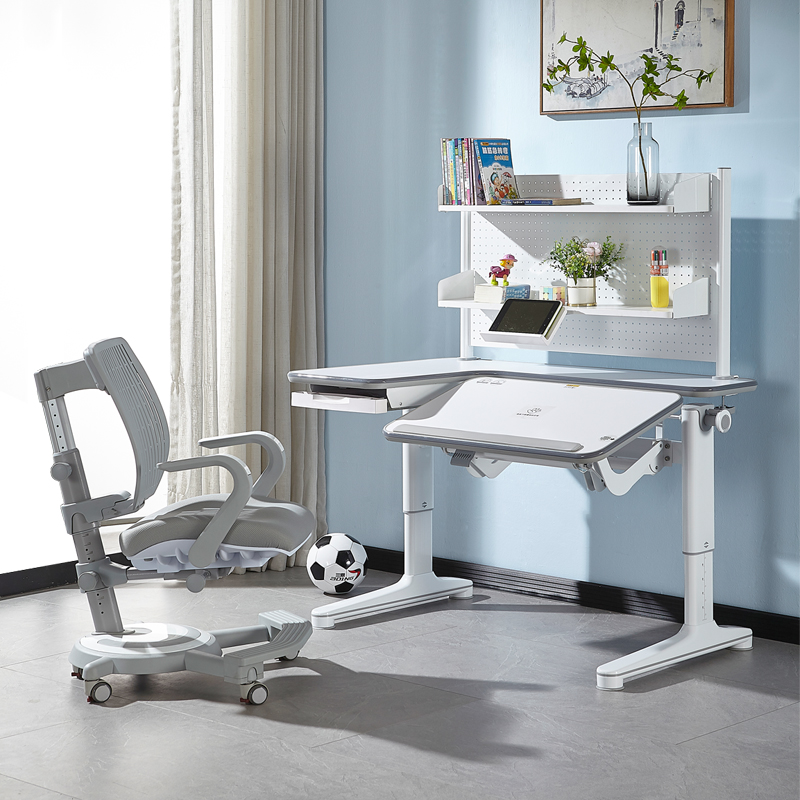 Taiwan Oxford double lift L-shaped children's study desk and chair set to accompany reading desk solid wood writing desk Comple