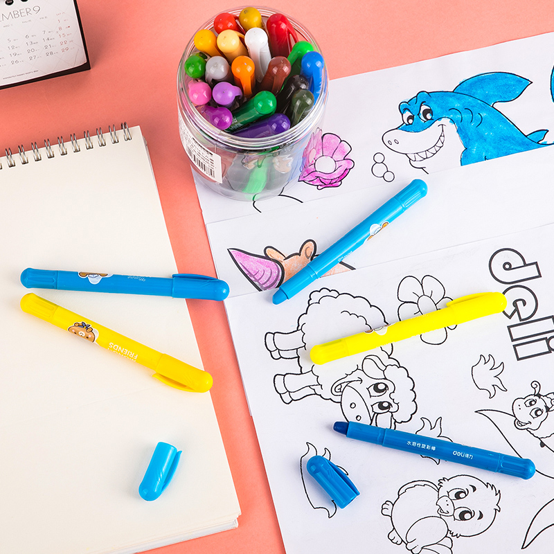 Deli water-soluble oil painting stick rotating crayon Children colorful stick stick color washable kindergarten baby brush set Oiling stick baby crayon 24 colors 12 colors 18 colors oil painting stick coloring pen
