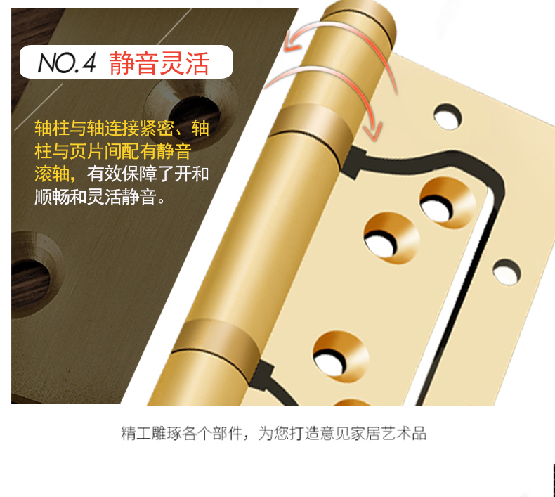 Imperial copper mute free slot free slot mother thick hinge wooden door door hinge solid wood door folding sheet 4 inch pure copper
