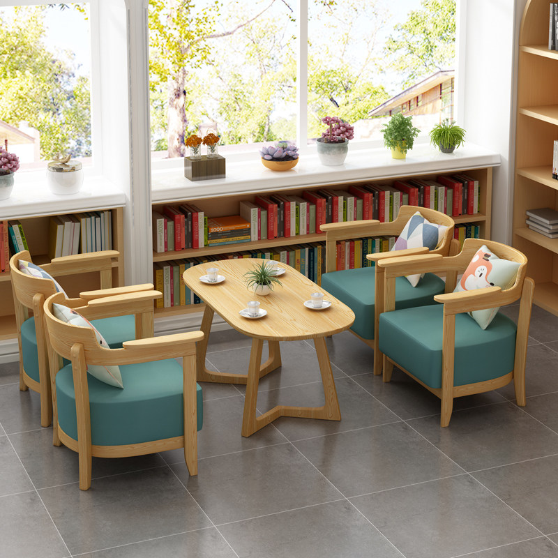 Milk Tea Shop Table And Chairs Combination Brief Casual Cafe Cake Sweet Shop Talks Solid Wood Sofa Chair Suboffice