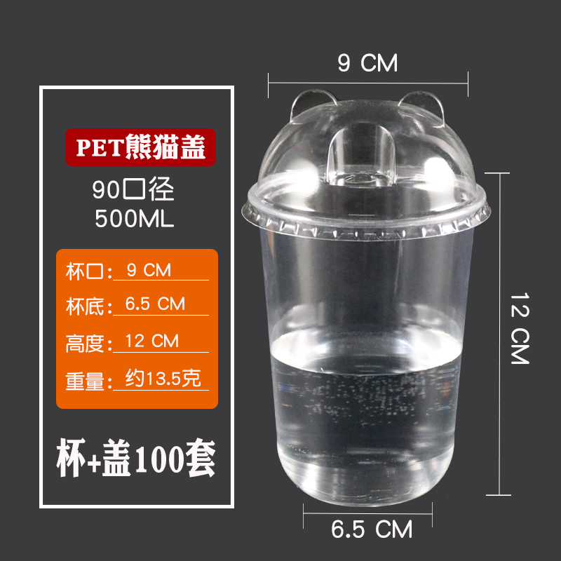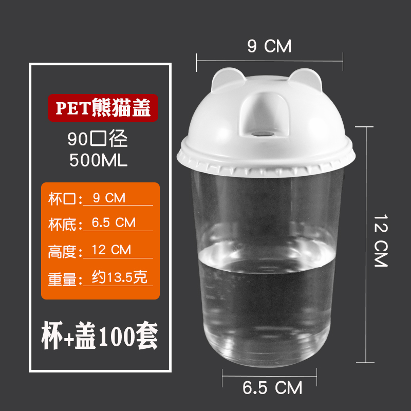 Disposable fat cup 90 caliber U-shaped milk tea cup 500ml panda cover thickened pet high transparent dirty plastic cup