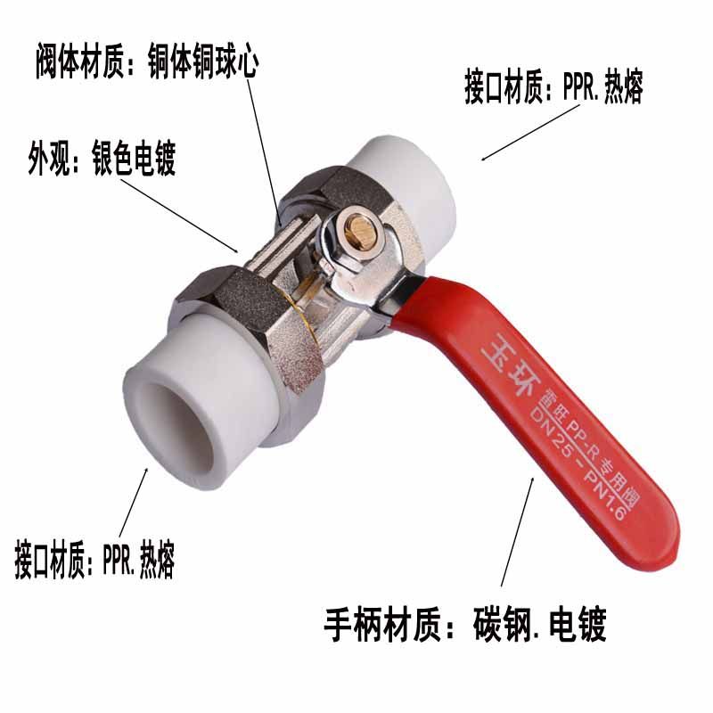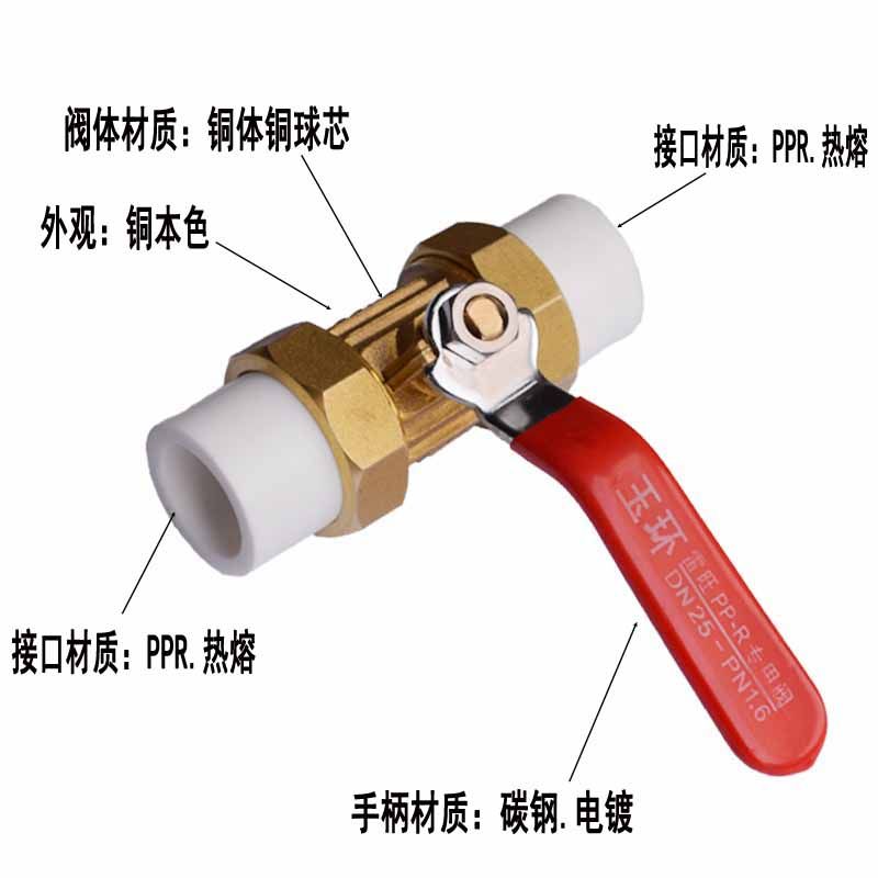 PPR Direct Pass Welded Brass Ball Valve 4 - point Copper Valve Dual - active Copper Valve - Switch Home Engineering Special Copper All - copper