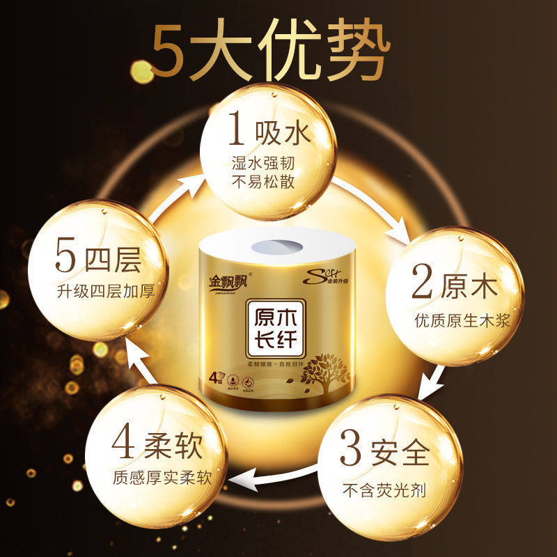 (48 volumes of family clothing 12 volumes) Gold floating with core rolls paper toilet paper rolls toilet paper Home big rolls toilet paper