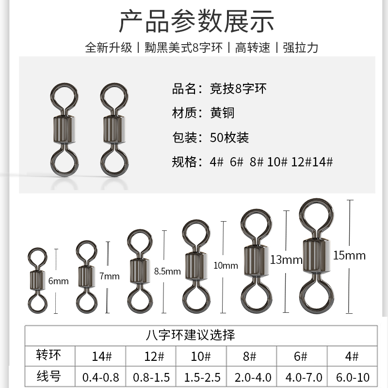 Xiaoyu 8-character ring 8-character swivel fishing accessories strong pull connector fishing gear fast fishing supplies Daquan