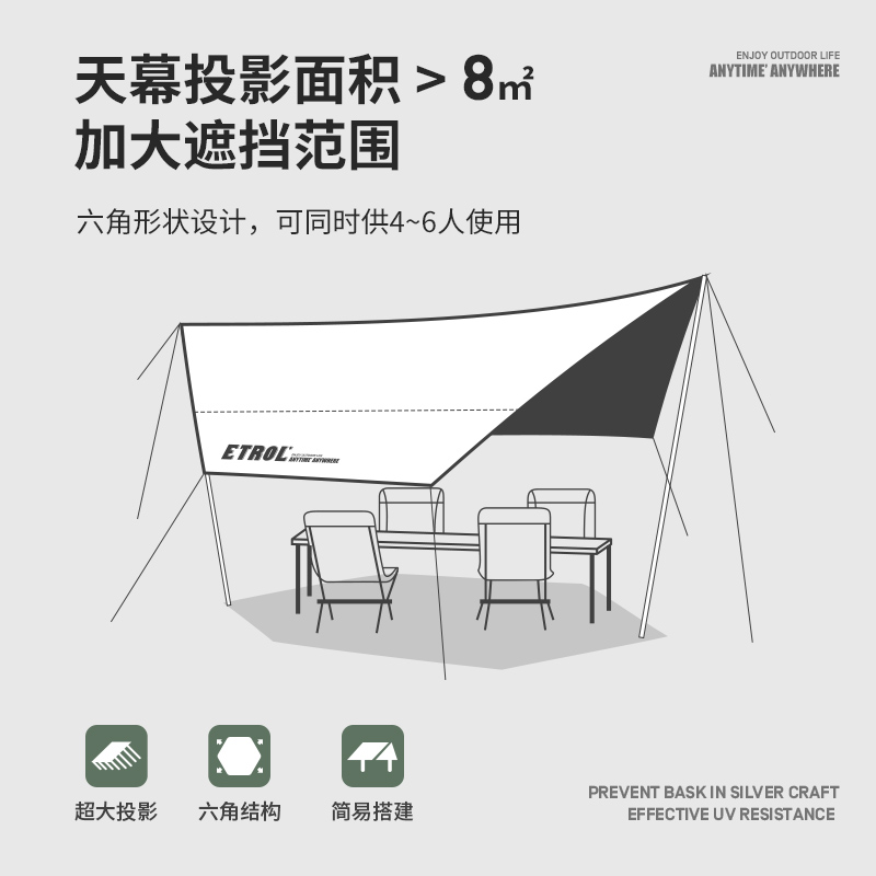 Etrol outdoor sky curtain ultra light screen fishing camping tent waterproof sunscreen awning camping portable