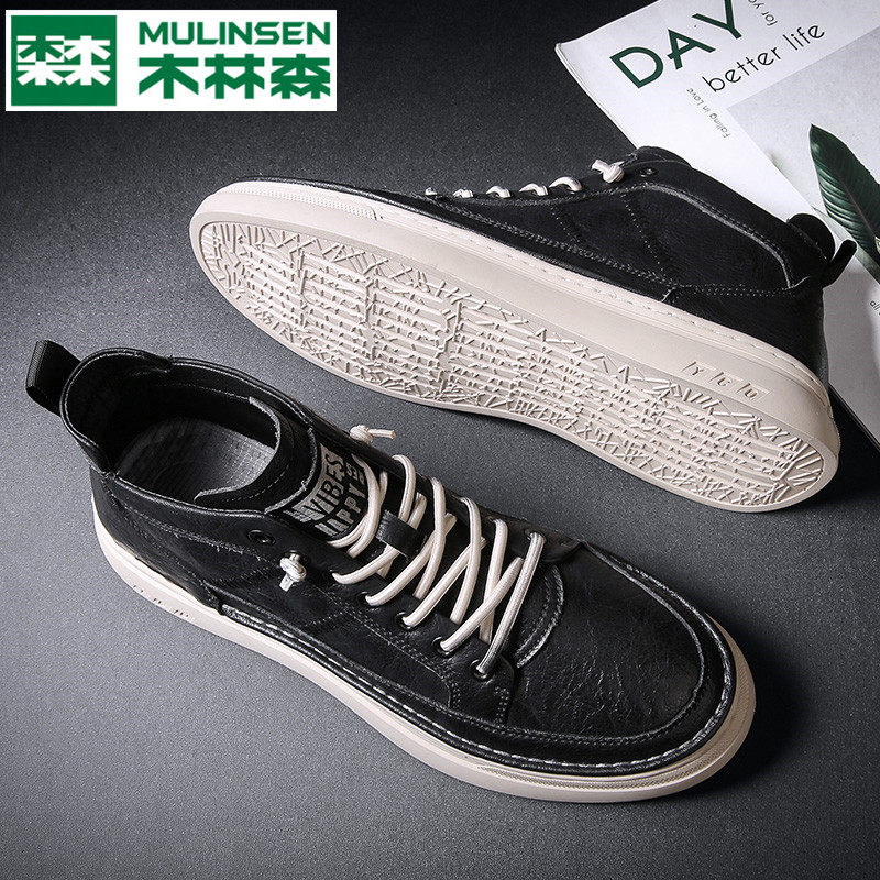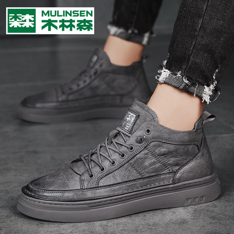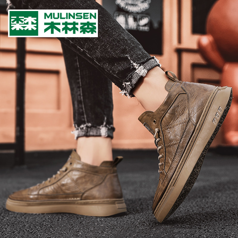 Mulinsen high-top leather shoes men's autumn and winter fleece warm two-layer cotton shoes casual soft leather Martin leather boots Xinhua City