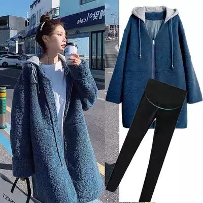 Pregnant women autumn and winter suits fashion out Korean version of loose medium and long version of net red lamb cashmere coat tide hot mom winter clothes