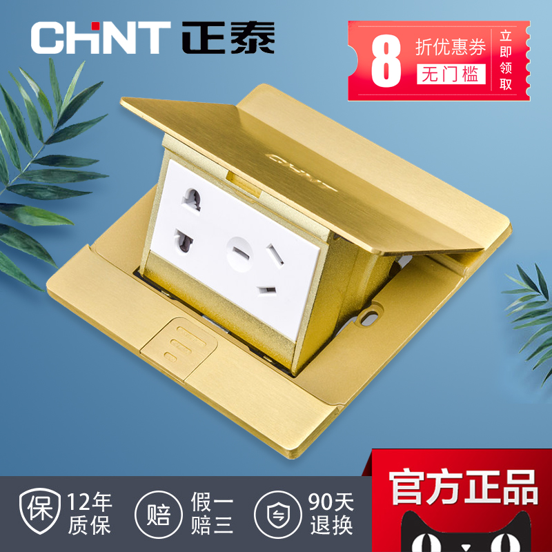 Zhengtai ground socket full copper waterproof five-hole invisible hidden ten-hole ultra-thin gray silver network computer ground