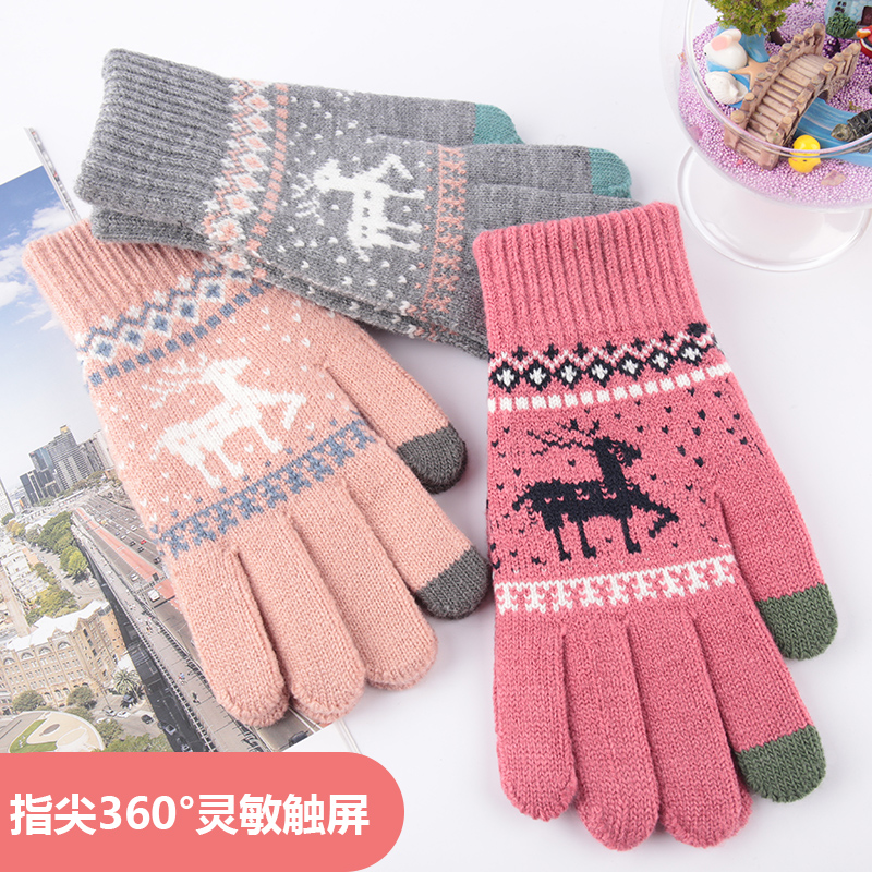 Knitted Touch Screen Gloves Lady Winter Warm Thickening Plus Suede Outdoor Riding Jacquard Cute Elk Deer Han Edition Gloves