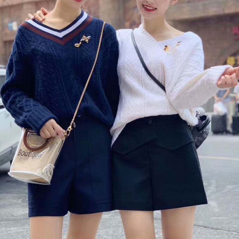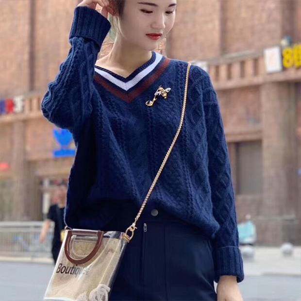 Year Amashxinte 2022 Spring and Autumn New Counter Loose College Wool Knit V-neck Sweater Women
