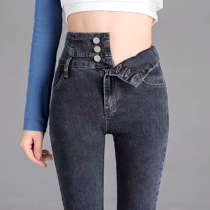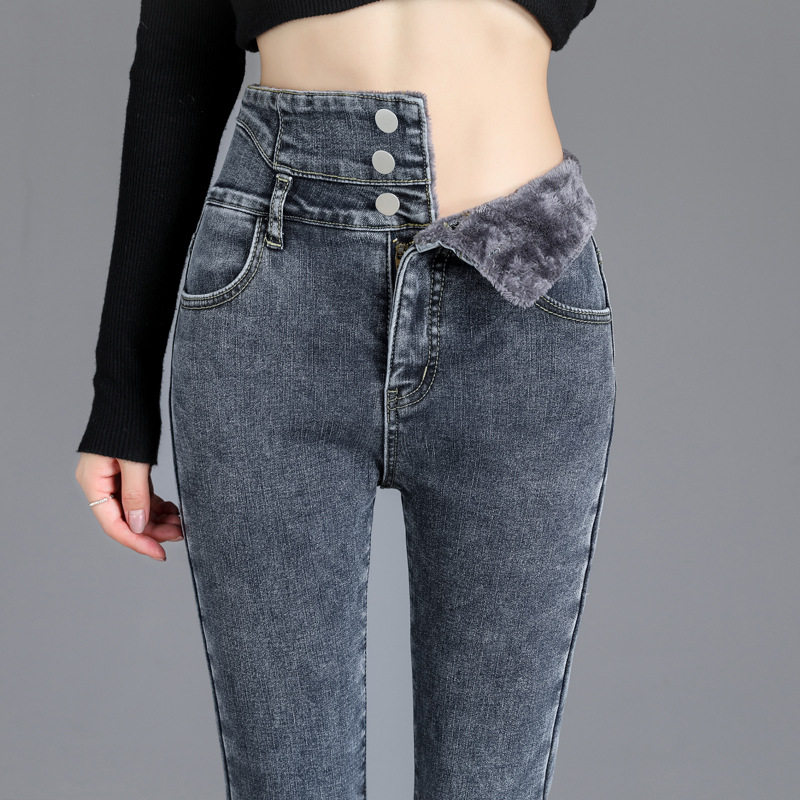 mara sixty European goods jeans female ultra high waist elastic display slim fit and thickened with small feet long pants