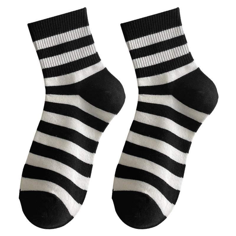 Dairy Sox Children ins Chains Spring Fall Black white midbarrel socks South Korean striped Sox Lovely Japanese students Long Sox