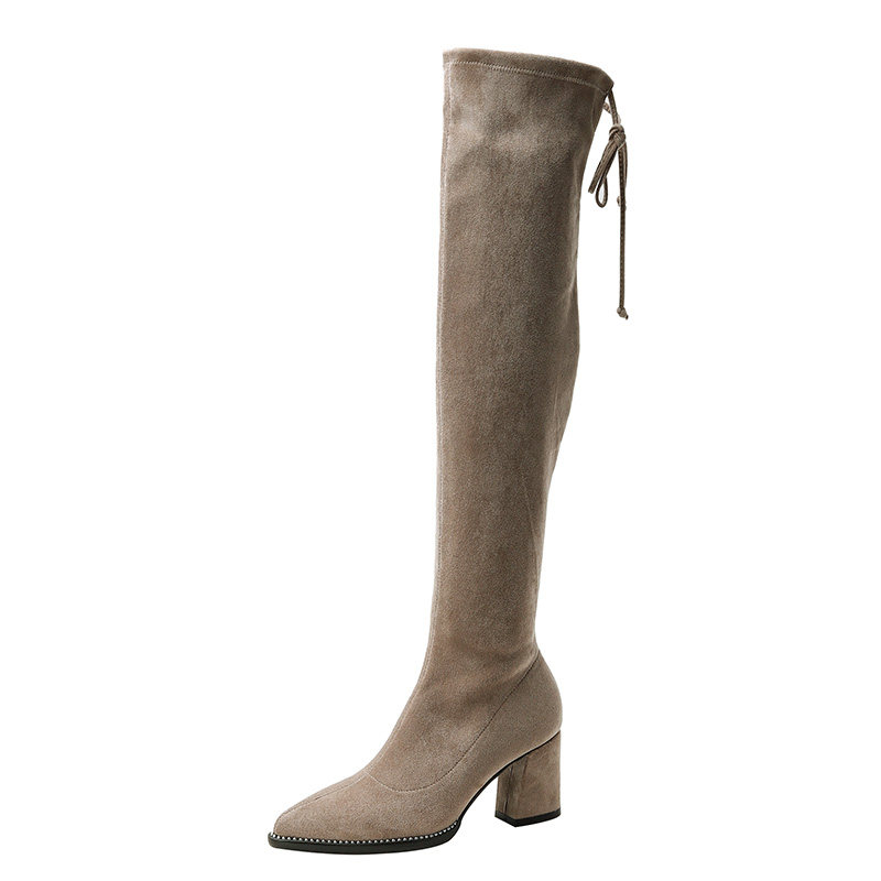 Card Its Color Long Boots Woman Over Knee Boots Rough Heel 2021 Autumn Winter New Plus Suede High Cylinder Boots Woman High Heel Cylinder Elastic Boots