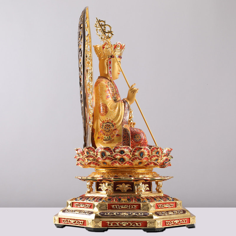 Taiwan pure copper gilt gold painted Tibetan King Bodhisattva Kizang Buddha statue dedicated to the home of the three Saints handmade treasure color