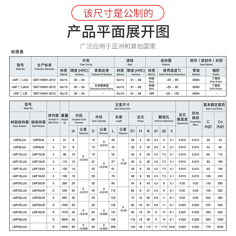 Lengthened round flange linear optical shaft sliding bearing LMF5 6 8 10 12 13 16 20 25 40LUU