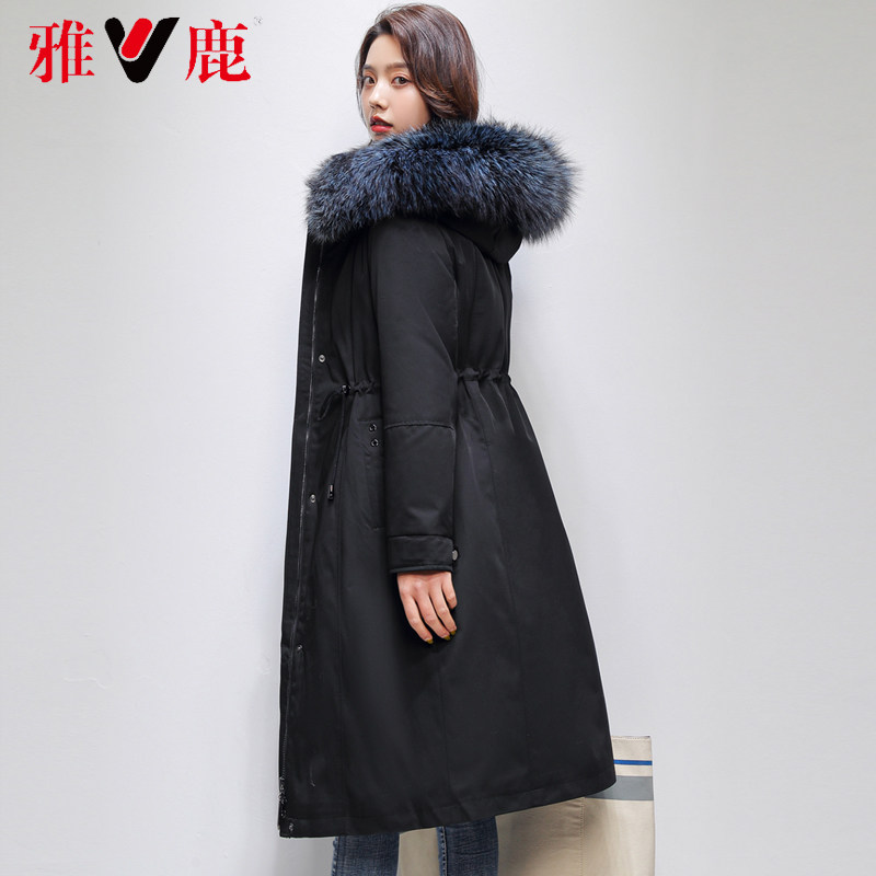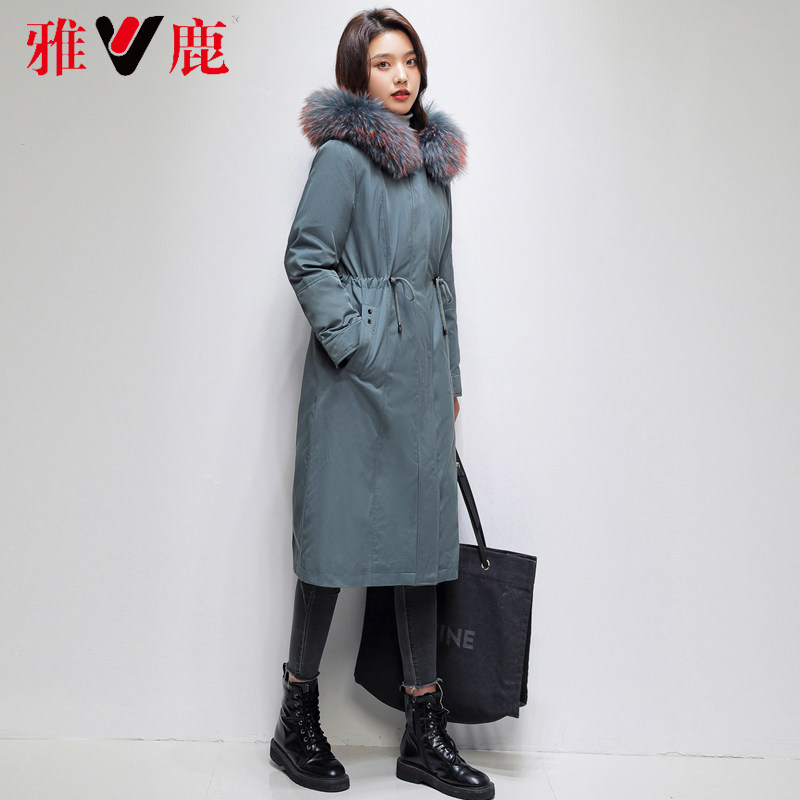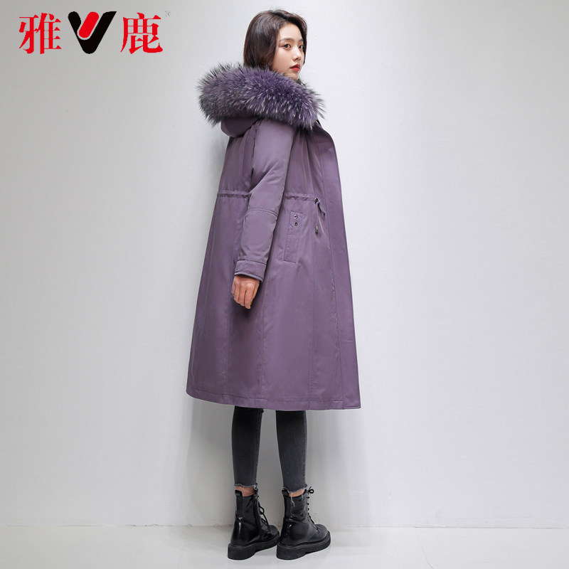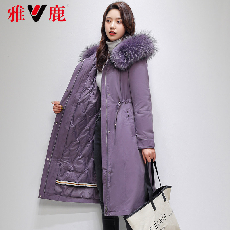 Yose Pike down clothes 2021 The new women's winter medium long version young detachable liner white duck suede real fur collar