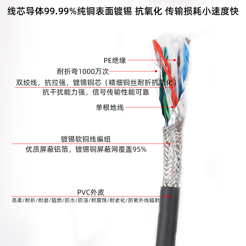 Sun TAIYO high-flexible shielding drag chain is resistant to bending tens of millions of times gigabit transmission camera network line super five categories CAT5E