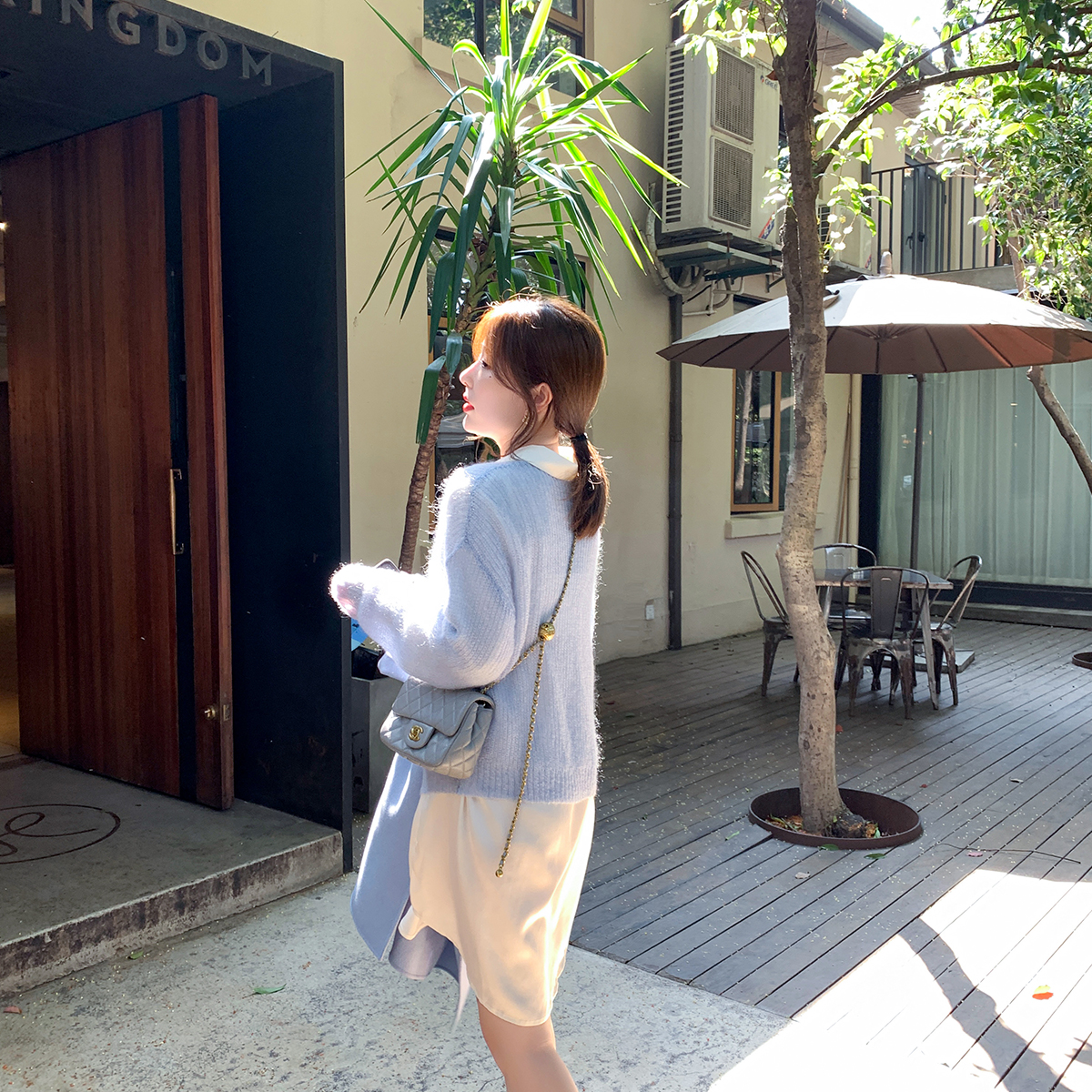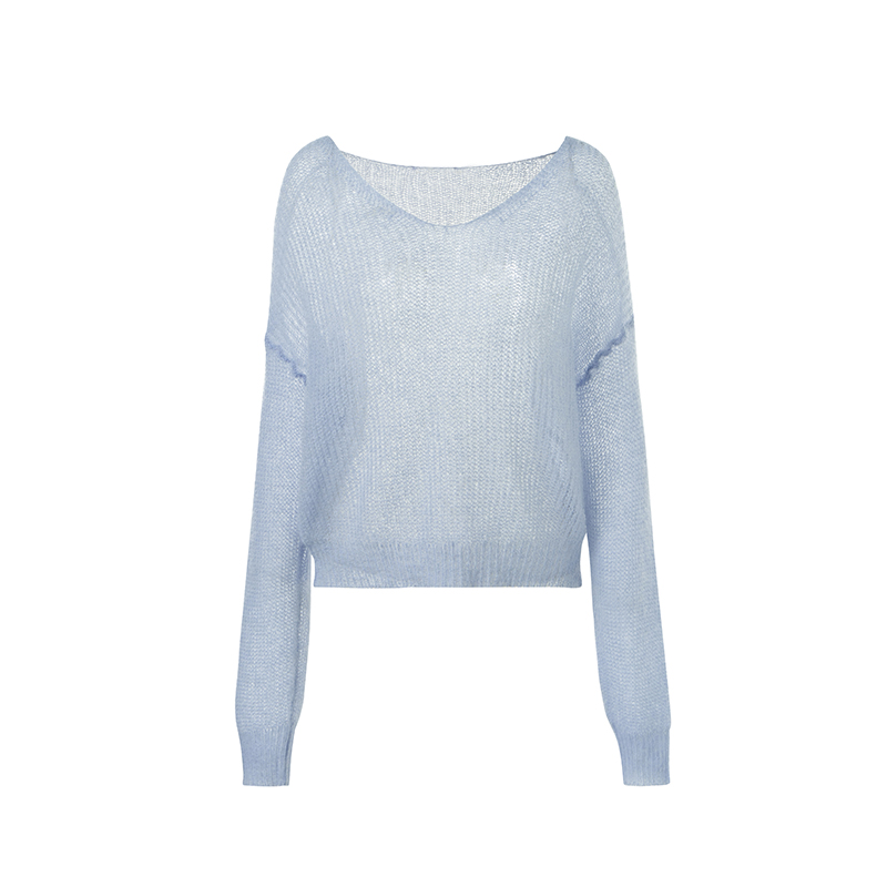 ByYou autumn new blue mohair thin sweater women's long-sleeved loose all-match pullover knitted top