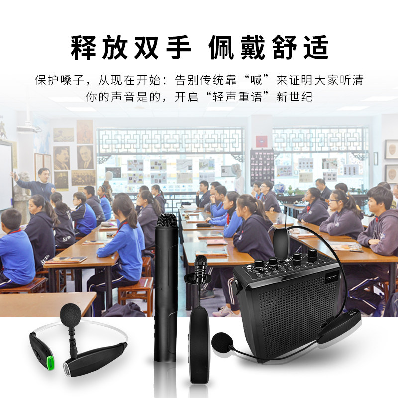 Wireless microphone teacher with lapel-type with audio sports teaching outdoor live broadcast handheld interview conference speech tour guide loudspeaker hanging neck head-mounted small bee professional noise-cancelling microphone