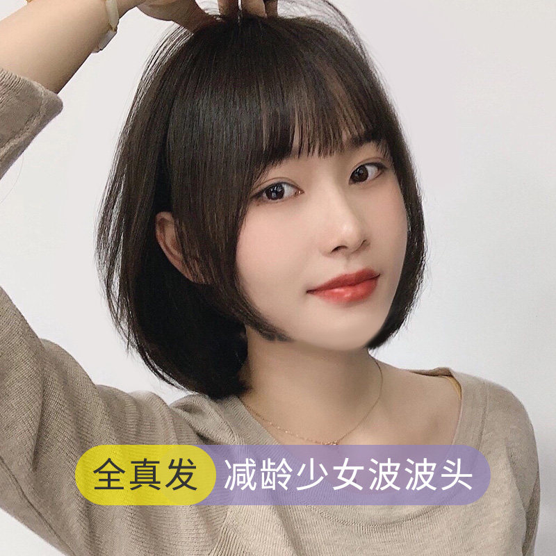 Wig female short hair round face lovely all-real natural wave head Live hair mesh red long hair shape