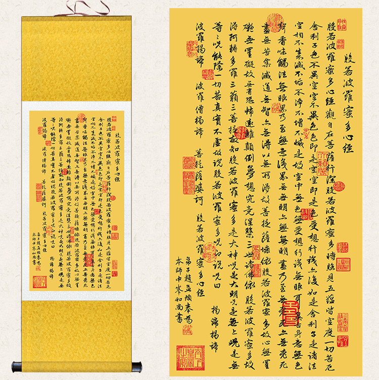 The heart scripts calligraphy works like calligraphy works like a meditation on a Chinese living room decoration painting scroll painting by a Chinese style living room