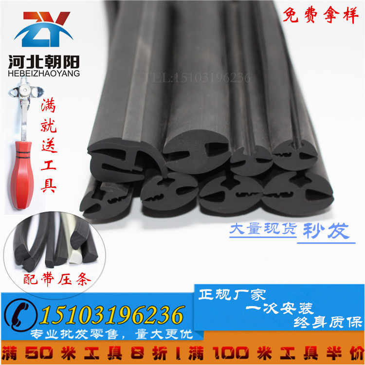Three glass inserted cabinet door inserted two mouths rubber sealing machinery door and window glass card H-type card