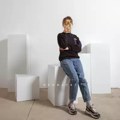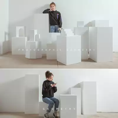 Geometric Booth shooting props photography geometric white cube wooden pier square large cube photo studio photo studio live window background ornaments high and low floor display cabinet clothing shoe shop table