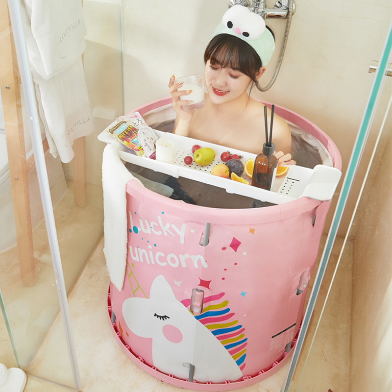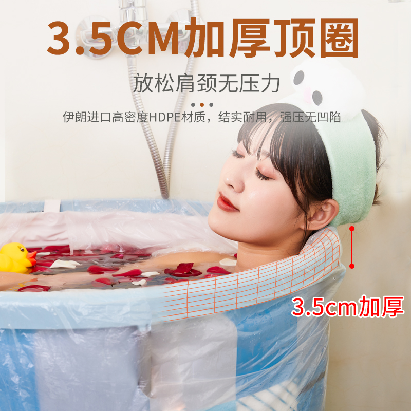 Bath bucket adult can fold bath bucket household full body bath bucket thick free inflation seconds install thermal insulation bath bucket