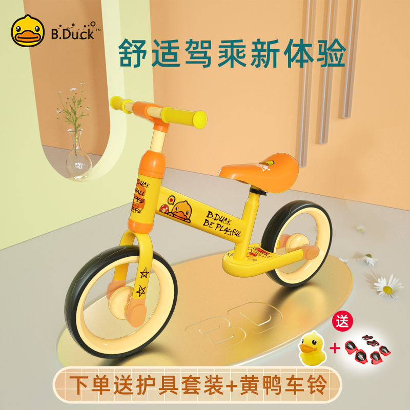 Small yellow duck child balance car without pedalling 2-3-6-year-old baby learning step with toy bike taxiing with a car-Taobao