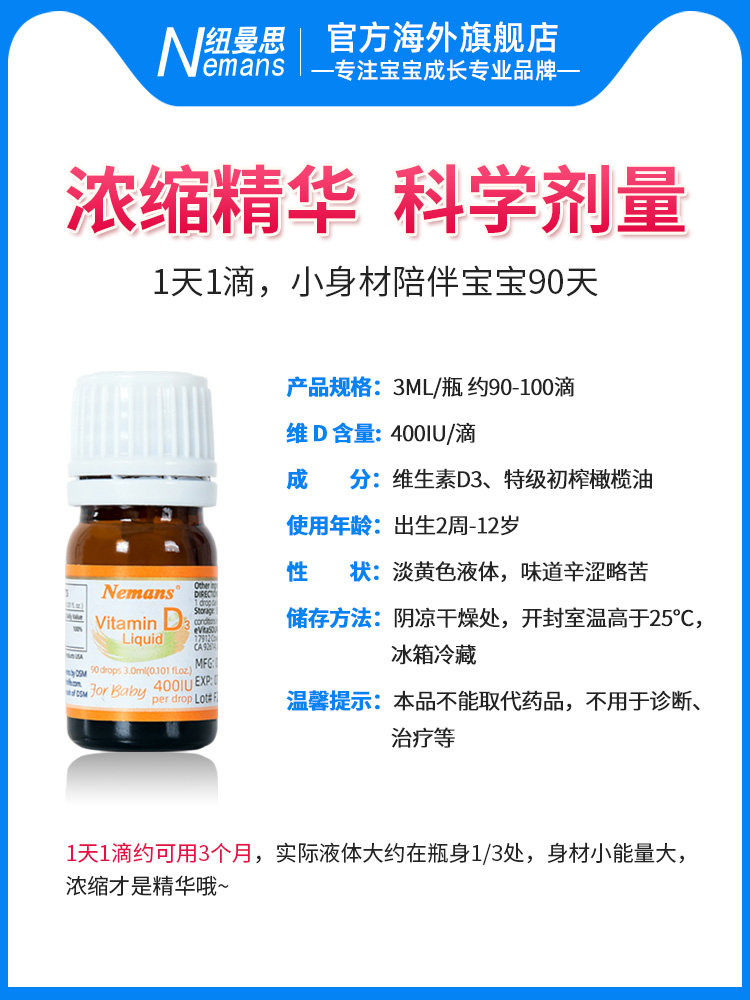 Neumans formerly known as Neumans newborn baby d3 vitamin D3 drops imported for children over the age of 0 years old vitamin D calcium supplement