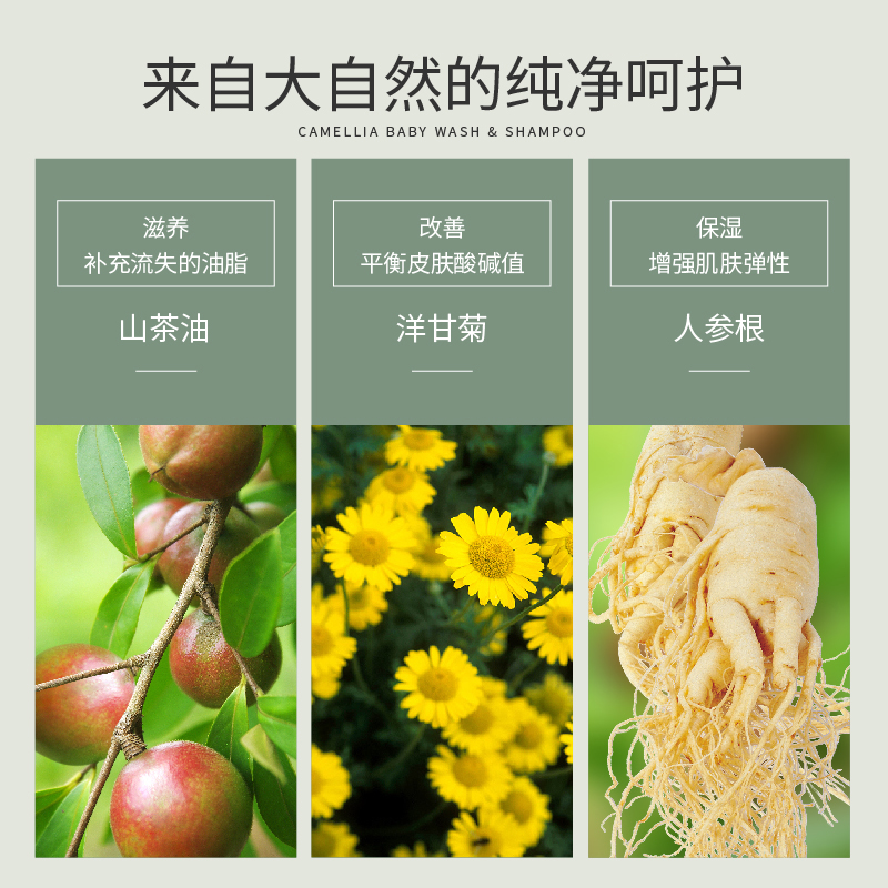 Infant Mountain Tea seed shampoo shower 1 bottle of infant Mountain tea seed shampoo with bath lotion 2 bottles of infant shampoo body lotion 1 bottle of camela butter body milk 85ml1 infant shampoo body lotion