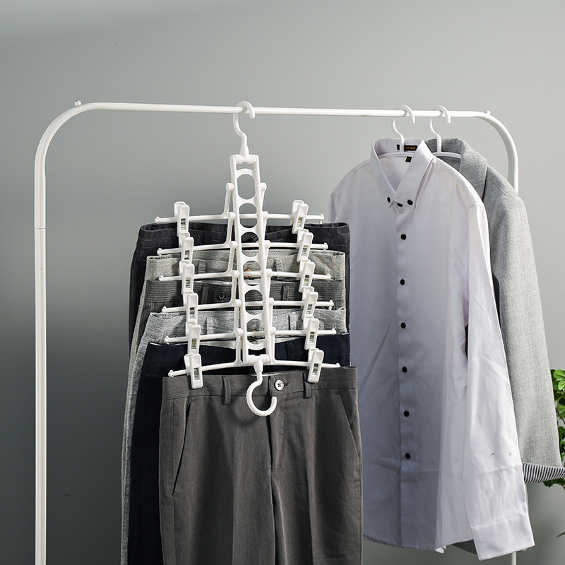 Pants Rack Pants Clips Home Clothes Hanger Hung Trousers Wardrobe Contained Multilayer Multifunction Folds Fold Multi-Clip Skirt Pants Holder
