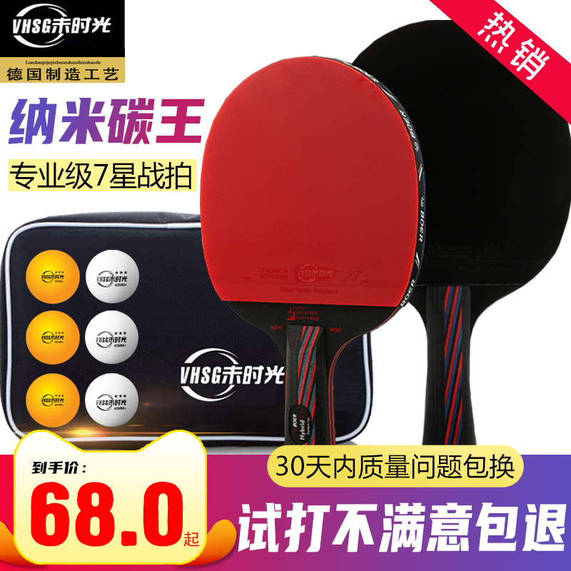 VHSG Untimed Table Tennis Racket Single Racket 1 Professional Grade Six Star Horizontal Racket Straight Shot Student Ping-Pong Racket