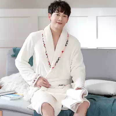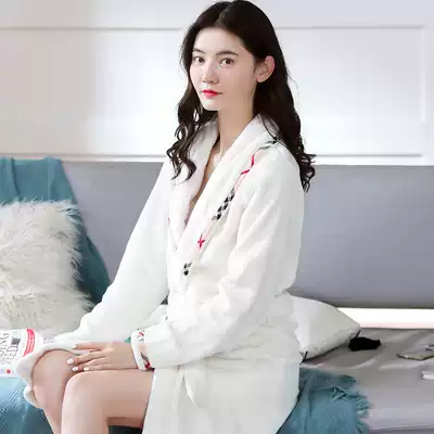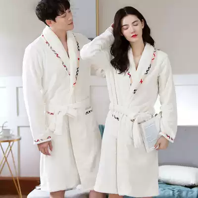 Nightgown women autumn and winter flannel pajamas home clothing coral velvet thick large size men's bathrobe long version of couple bathrobe