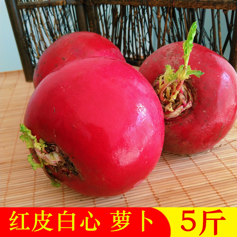 Northeast red radish Fresh Bian radish red skin white heart Dahongpao round head sweet and crispy a portion of about 5 pounds