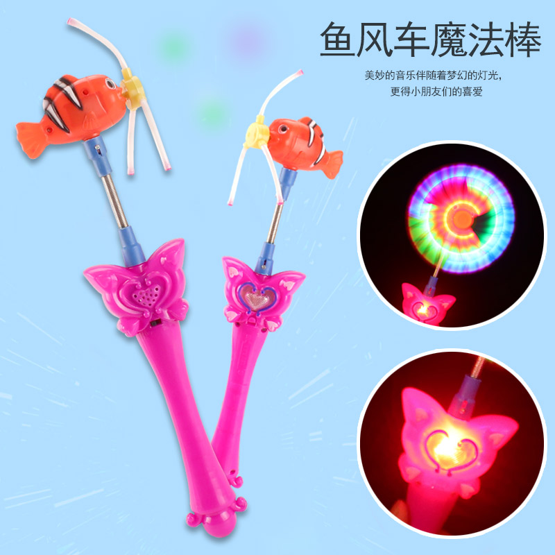 Fish Windmill Sparkling Music Luminous Magic Wand Electric Windmill Sparkling Toy Hot Sell for Toys Direct Sale