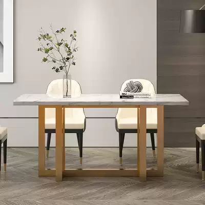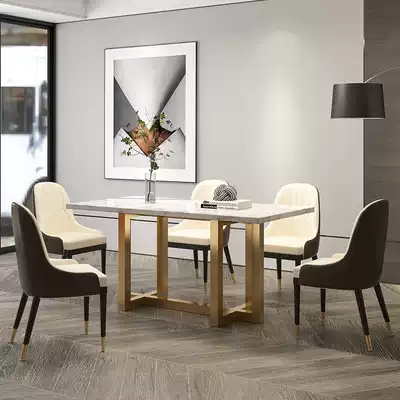 Marble dining table Nordic household modern simple rectangular small apartment dining chair combination Italian stainless steel dining table